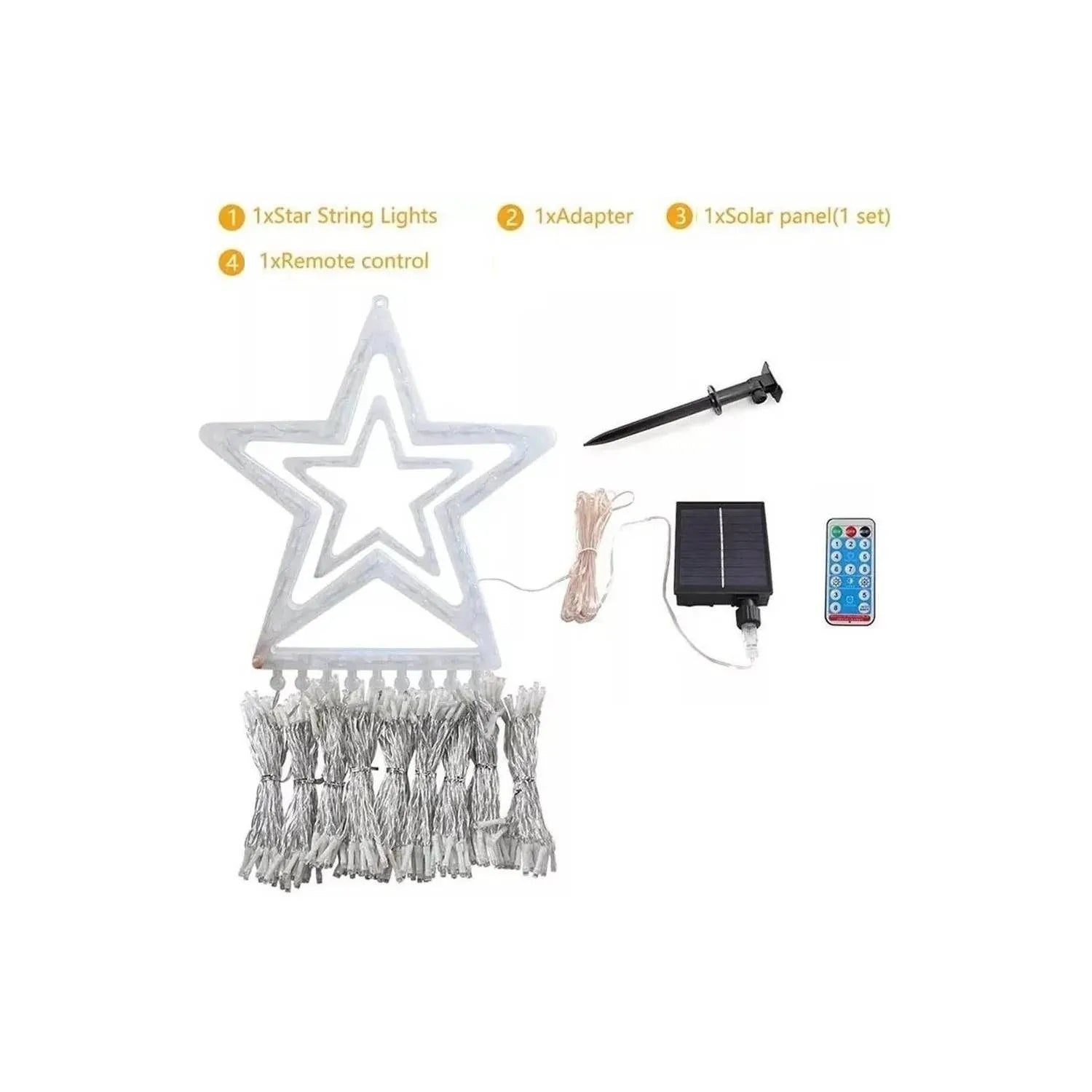 Ilumina tus celebraciones con este Árbol de Navidad en forma de cascada de luces LED solares, que combina belleza, practicidad y energía renovable. Su diseño en forma de estrella con guirnaldas descendentes crea un efecto mágico y festivo, perfecto para decorar jardines, terrazas, balcones o entradas durante la temporada navideña.