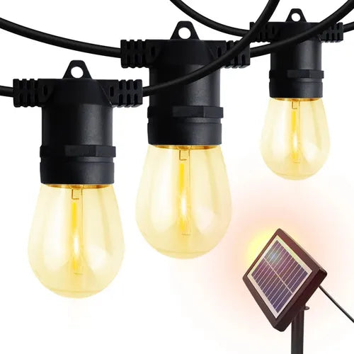 Diseñada para crear un ambiente acogedor en tu jardín, terraza o balcón, esta guirnalda se carga con energía solar, lo que te permite disfrutar de su brillo sin gastar electricidad ni preocuparte por los cables.